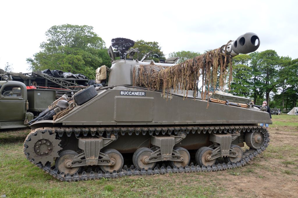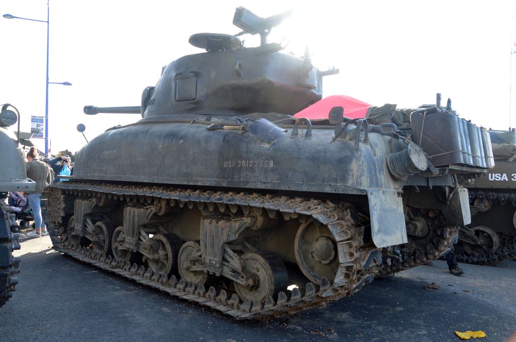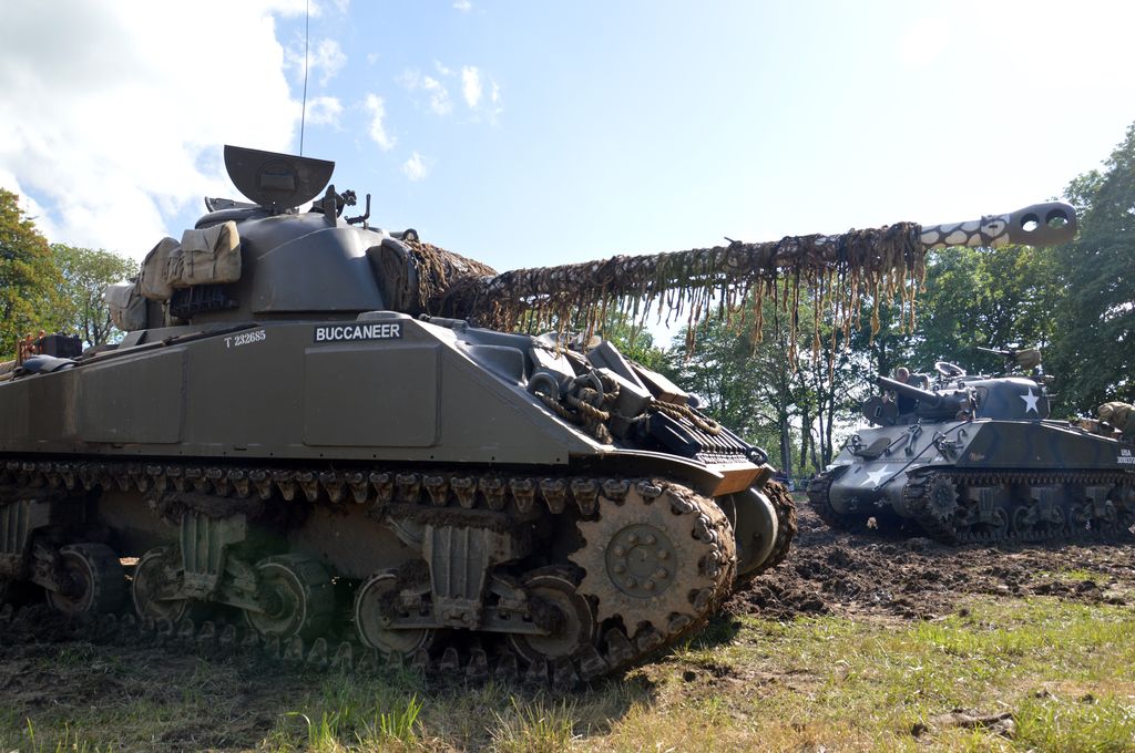 Le 7 juin, après avoir sorti un peu le Sherman dans le champ en face du camp et avoir fait faire un tour à un vétéran de la 2nd Armored Division qui a débarqué à Vierville-sur-Mer le 6 juin (!), direction le camp Geronimo à Sainte-Mère-Eglise. Que de matériel présent ! Beaucoup de chars notamment : trois Sherman M4A1 (des Grizzly en fait), un M7B1 Priest et un Tank Destroyer M10. Cependant, des espaces vides semblent indiquer que des chars sont manquants.
