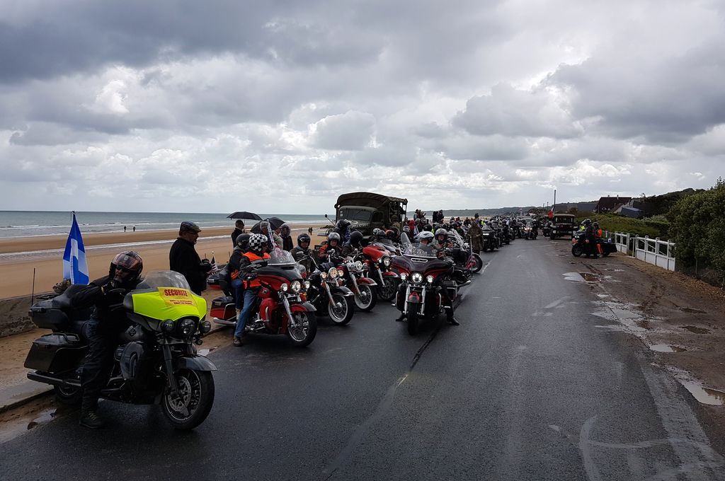 Le samedi 8 juin, une cérémonie était organisée au premier cimetière américain face à Omaha Beach en présence de véhicules de l'UNIVEM et de... 200 motos Harley-Davidson !