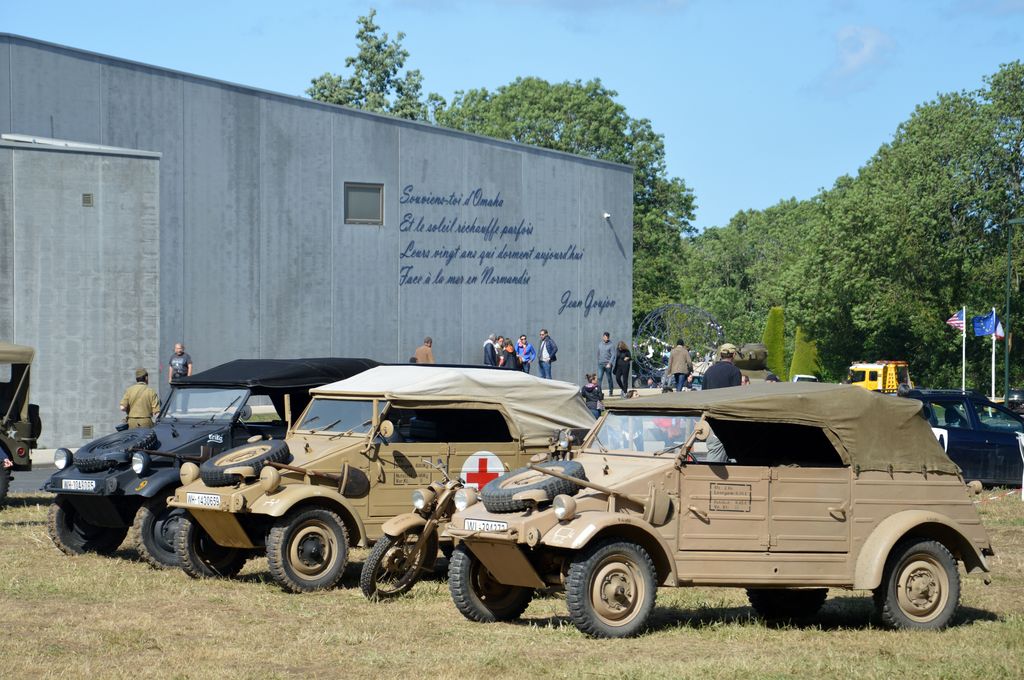 Petit tour en Jeep ensuite pour aller faire un marchand de militaria, avec au passage, la rencontre de cette Tatra 57 et de ces deux Schwimmwagen. Puis, près du WN62, cette Volkswagen Type 87 (peut-être une réplique ?) sera vue, ainsi que ces GMC sur la plage d'Omaha Beach.