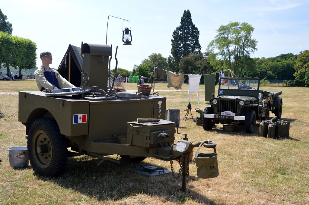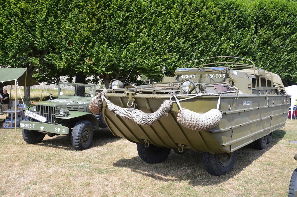 Le Scout Car, la Jeep 2ème DB, la cuisine roulantes, quelques tentes et des accessoires constituèrent ainsi un petit bivouac. Autre véhicules amenés, et non des moindres, le Half-Track M16 attelé à la remorque porte-munitions M10, l'International M426 et sa semi-remorque, le GMC DUKW (à bord duquel j'ai voyagé), le prototype de de VBL Renault, des Dodge Command ou encore les Jeep SAS et Navy. Des Jeep des membres (dont une peu courante canadienne et une rare rallongée aux couleurs du Signal Corps) complétèrent l'exposition militaire.
