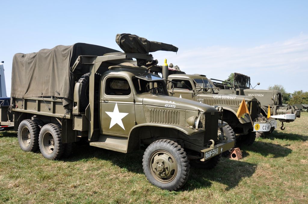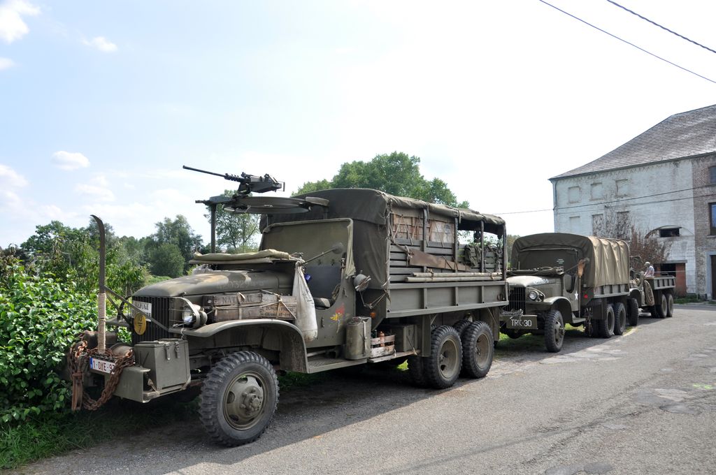 Nous arrivons sur le campement vers 13h, beaucoup de véhicules sont partis en convoi, tandis que des véhicules lourds sont restés sur place : GMC CCKW 352, Mack NO, International M426 ou Morris Commercial C8.