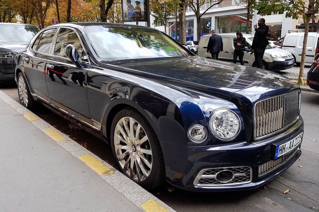 D'autres voitures, un peu moins exotiques sont stationnées dans les environs : Ferrari 488 Spider ou plusieurs Bentley : Continental GT, Bentayga dans une drôle de livrée effet marbre ou Mulsanne.