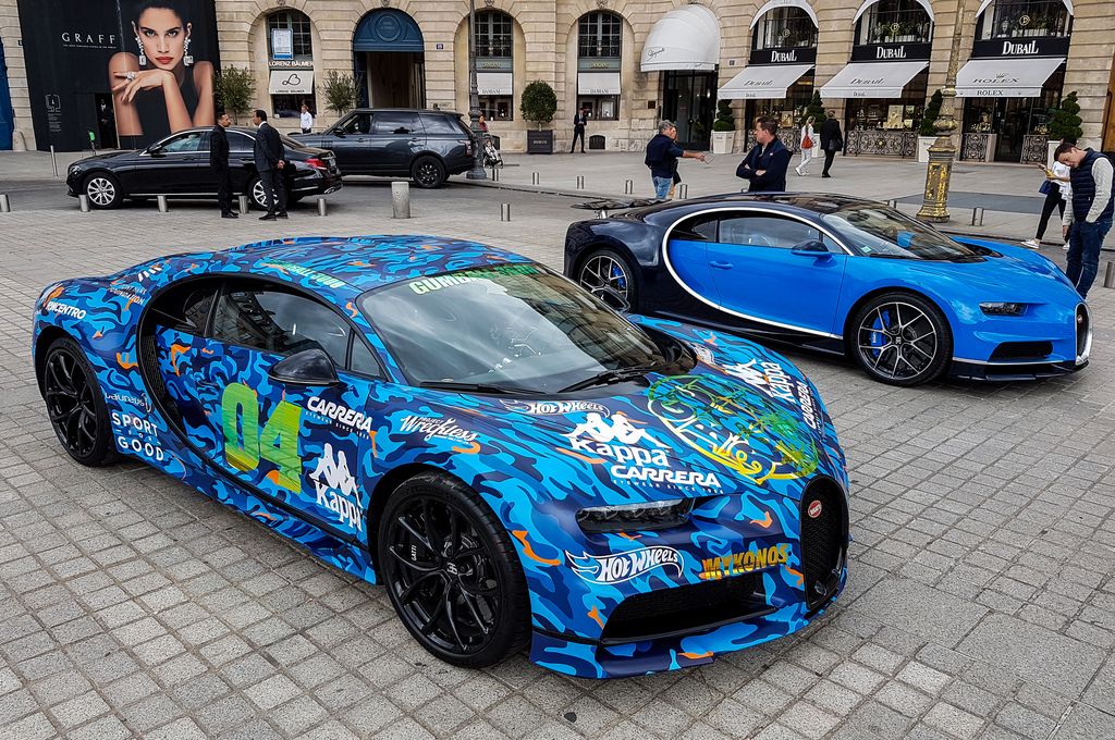 On retrouve toute sorte de modèles : Veyron, Veyron Grand Sport, Veyron Grand Sport Vitesse WRC, Veyron Supersport, Chiron, Chiron Sport, Chiron Sport 110 ans... Plusieurs couleurs sont également très originales, comme ces Chiron chromée ou jaune.