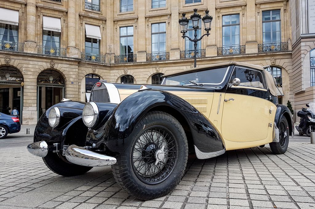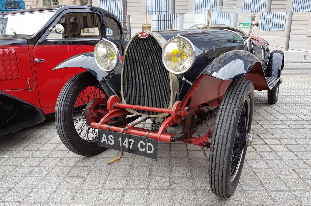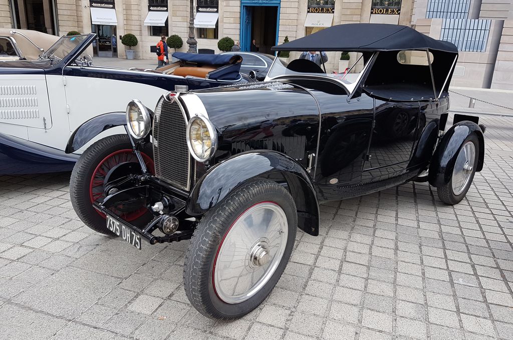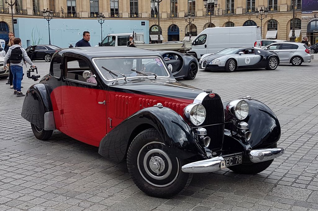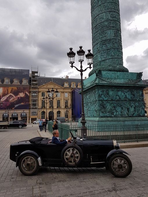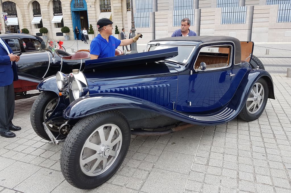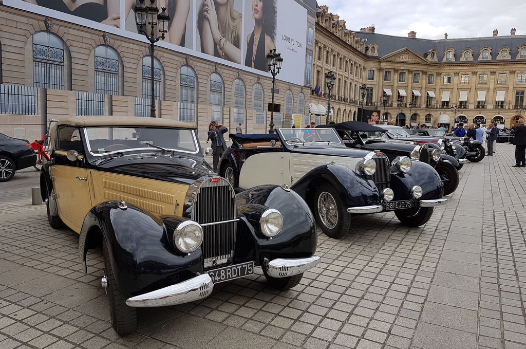 Sur la place Vendôme, des participants sont en effet déjà là : ces deux Chirons et cette Type 57.