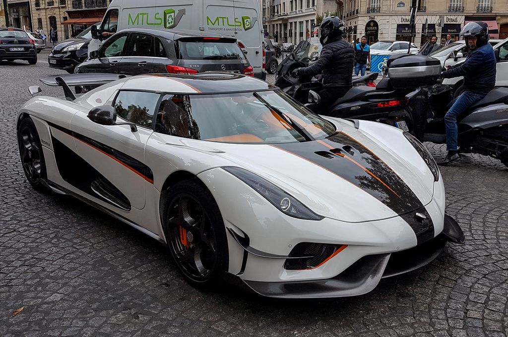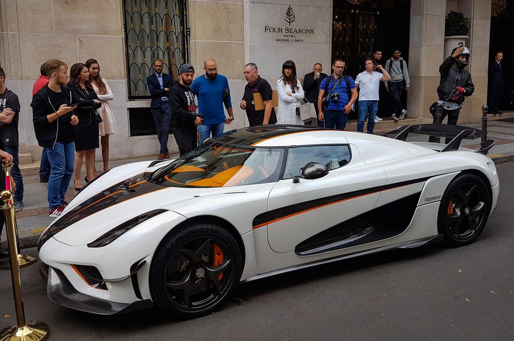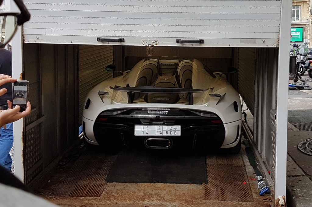 Un peu plus loin, la Koenigsegg est là, en attente de déchargement. Elle crée petit à petit un gros attroupement. En attendant, plusieurs supercars et autres passent, où sont stationnées non loin.