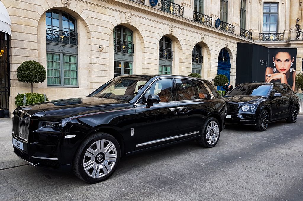 Devant le Ritz, une autre Chiron est présente ! Derrière elle également, le tout nouveau SUV de Rolls-Royce, le Cullinan, ainsi qu'un autre Bentayga et le récent Mercedes-Benz G63 AMG.