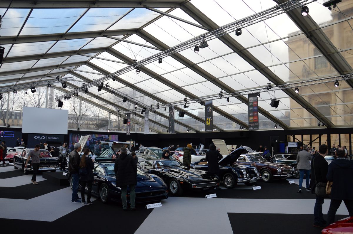 Pour bien commencer l'année, direction aujourd'hui l'une des ventes aux enchères de voitures anciennes organisées dans le cadre de Rétromobile, celle de RM Sotheby's qui se tient sous un chapiteau aux Invalides. Surprise cette année, en rentrant dans le chapiteau, je vois que la disposition a changé, avec la disparition des trois salles différentes pour n'en laisser qu'une.