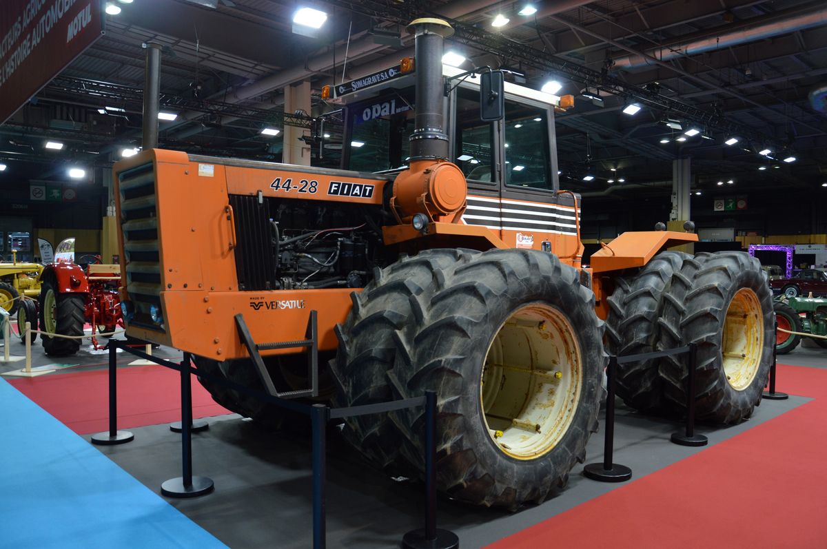 Une autre exposition est consacrée aux tracteurs construits par des marques autmobiles avec plusieurs pièces intéressantes : Renault 3042 équipé d'un système rotapède, Renault HI à chenilles, Citroën Type J, des Porsche Junior et Master, un petit Fiat 25R devant un plus gros Someca/Fiat 1300, ou encore plus gros Fiat Versatile, un MB Trac ou encore ces Volvo-BM.