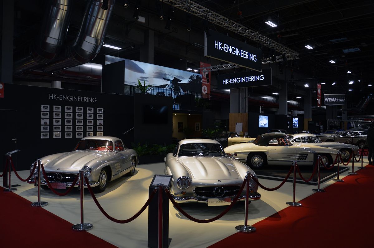Peut-être arrivera-t-elle un jour au niveau de la Mercedes-Benz 300 SL, toujours présente en nombre sur le salon (une douzaine peut-être ?). Rien que sur ce stand, on en comptait cinq. Autres voitures remarquables de la firme à l'étoile : Mercedes de 1908, Sauber-Mercedes C9, CLK Black Series ou SLR McLaren Stirling Moss.