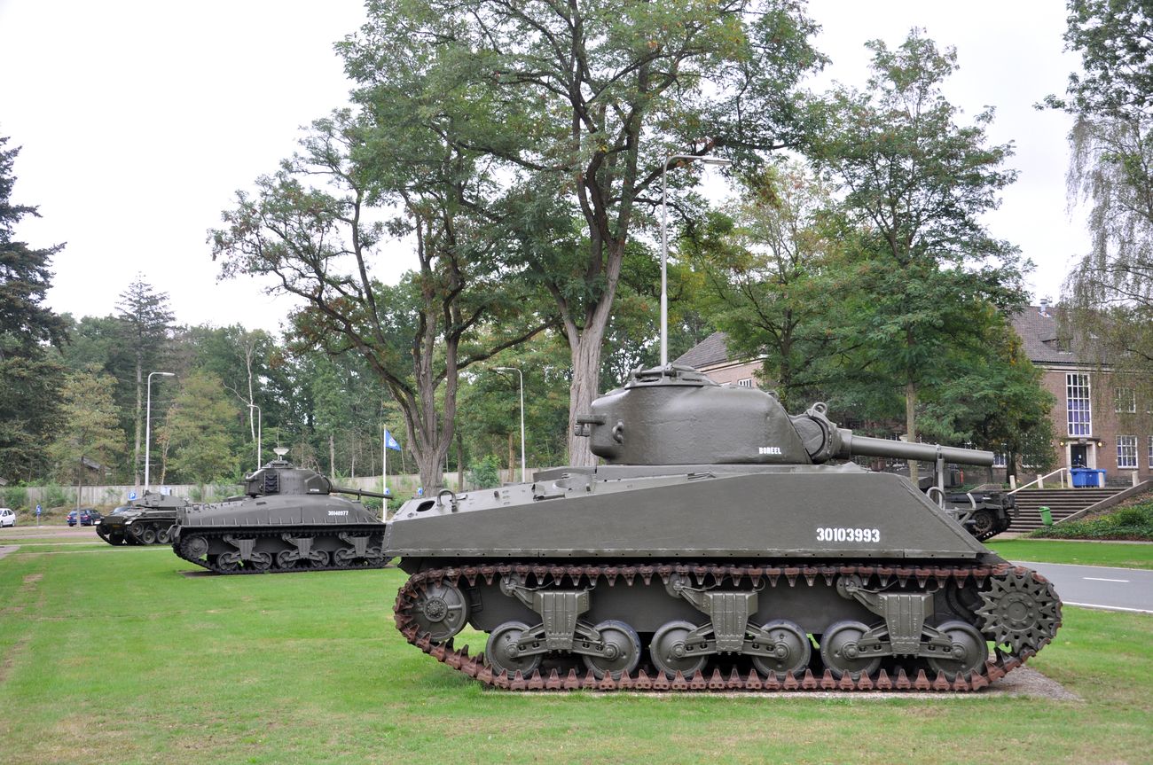 Nous sommes ensuite accompagnés jusqu'au bâtiment suivant. En chemin, plusieurs blindés aux couleurs néerlandaises : Centurion, M24 Chaffee, Sherman M4A1 et M4 105mm.