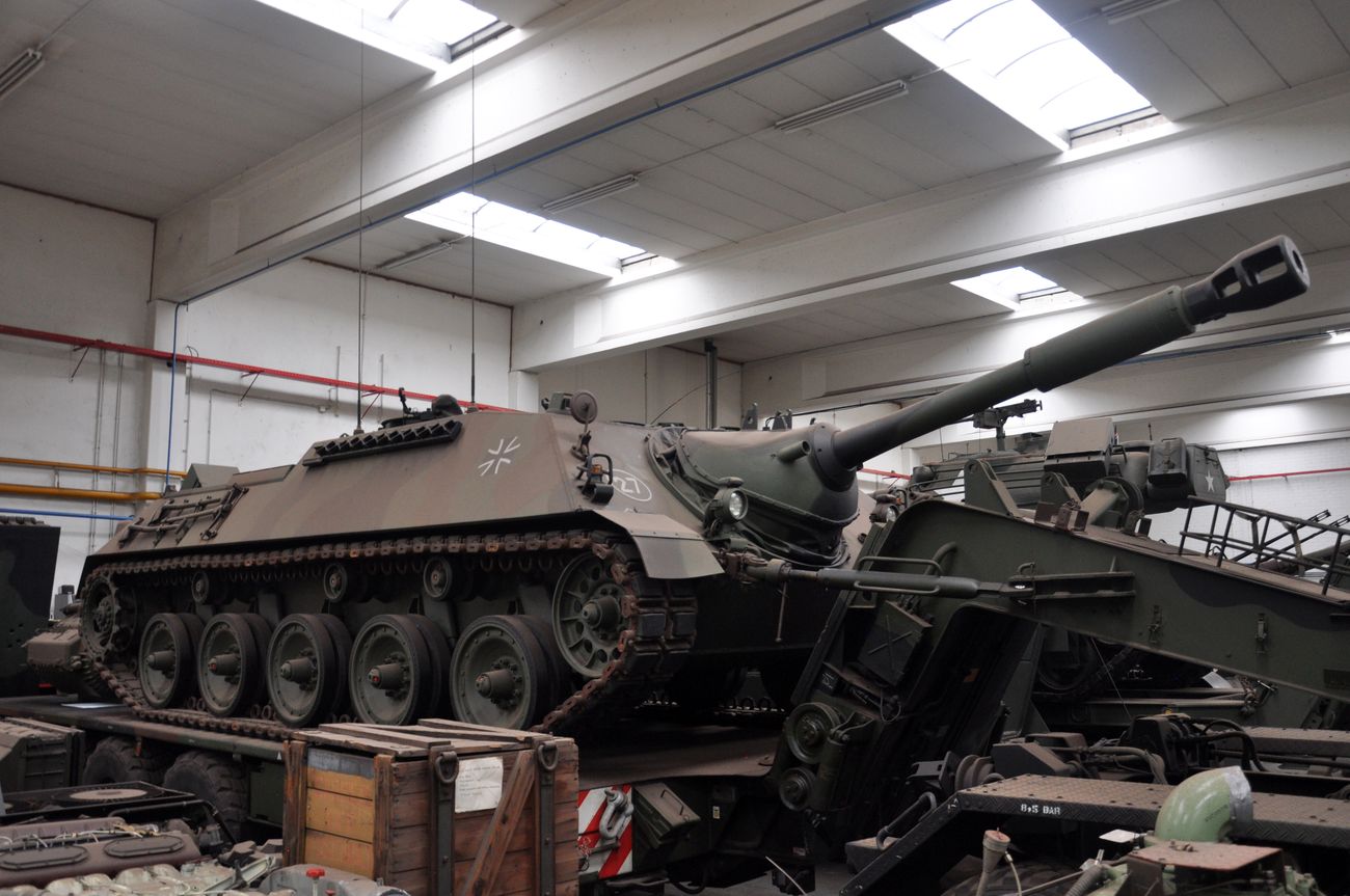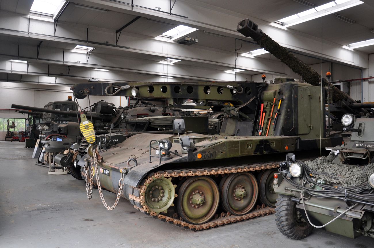 Dans le dernier bâtiment, des véhicules plus modernes comme des portes chars de la guerre-froide : M578 transportant un M47 Patton et un Faun SLT-50 transportant un Kanonenjagdpanzer. Des dizaines de chars sont encore entreprosés ici, comme un Leopard I ou un M48 Patton.