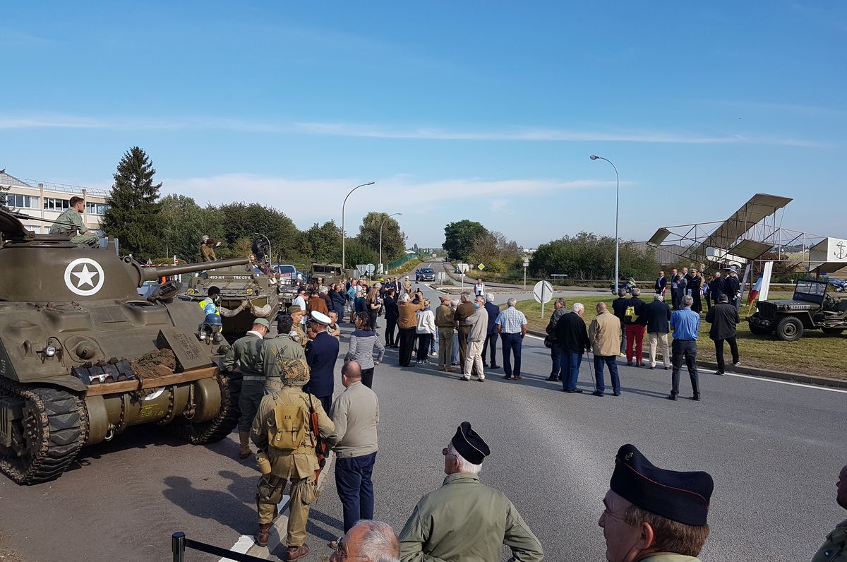 Après un repas offert par la mairie, une petite exposition consacrée à la ville pendant la Seconde guerre mondiale était à voir dans la salle municipale. L’après-midi, après le discours du maire, les baptêmes en véhicules ont été organisés pour le public. Finalement en fin d'après-midi, il était déjà temps de recharger le Sherman avant de reprendre la route vers Versailles, après une journée bien chargée mais très agréable.
