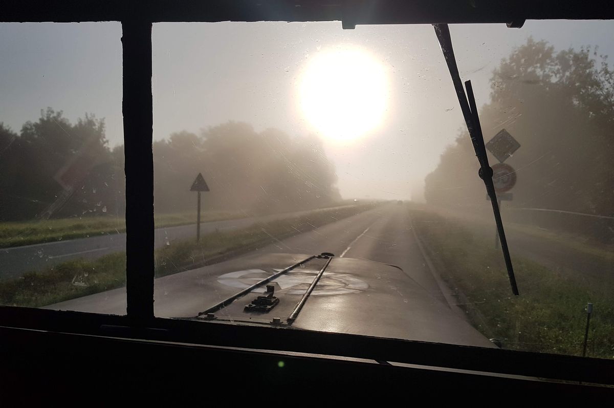 Aujourd’hui, je participe avec l'Univem à une triple sortie : la Fête de la Fraternité organisée dans trois villes voisines que sont les Loges-en-Josas, Toussus-le-Noble et Buc. Au petit matin, une partie du convoi s’élance vers les Loges-en-Josas, première étape du périple de la journée, avec un arrêt prévu près du monument aux morts. Ensuite, le convoi des Loges se scinde en deux. Une partie va à Buc pour se mettre en place afin d’accueillir une chorale pour une représentation. Tandis que l'autre partie se rend en direction de Toussus-Le-Noble