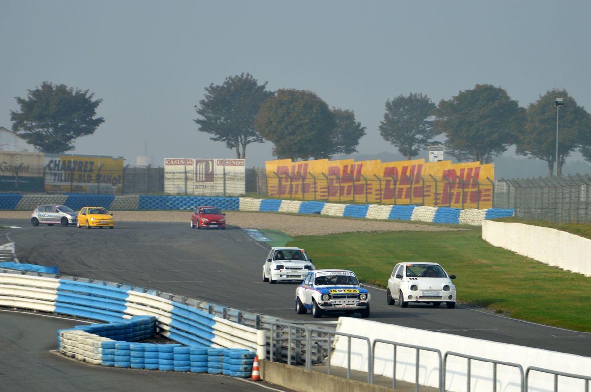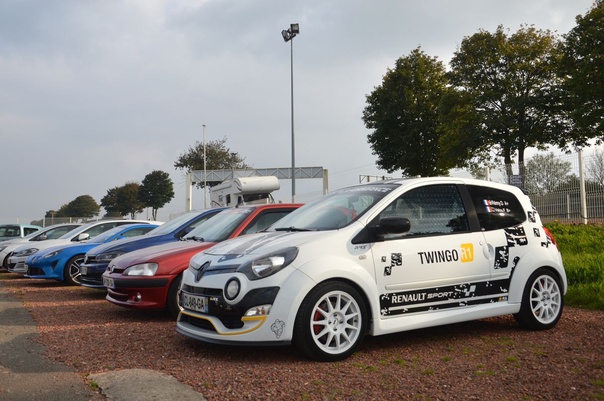 Les différentes voitures sont séparées en quatre catégories. La Swift est acceptée dans la première, celle des berlines. Je courrai donc aux milieu des 106 et 206 S16 et autres Twingo RS. On retrouve quelques curiosités comme cette Twingo 1 équipée d'un F4R. Quelques anciennes également comme cette 2 CV un brin modifiée, cette Renault 5 ou une vieille Ford Escort qui assurait le spectacle. Chaque session dure 20 minutes et chaque catégorie roule 6 sessions en alternance au cours de la journée.