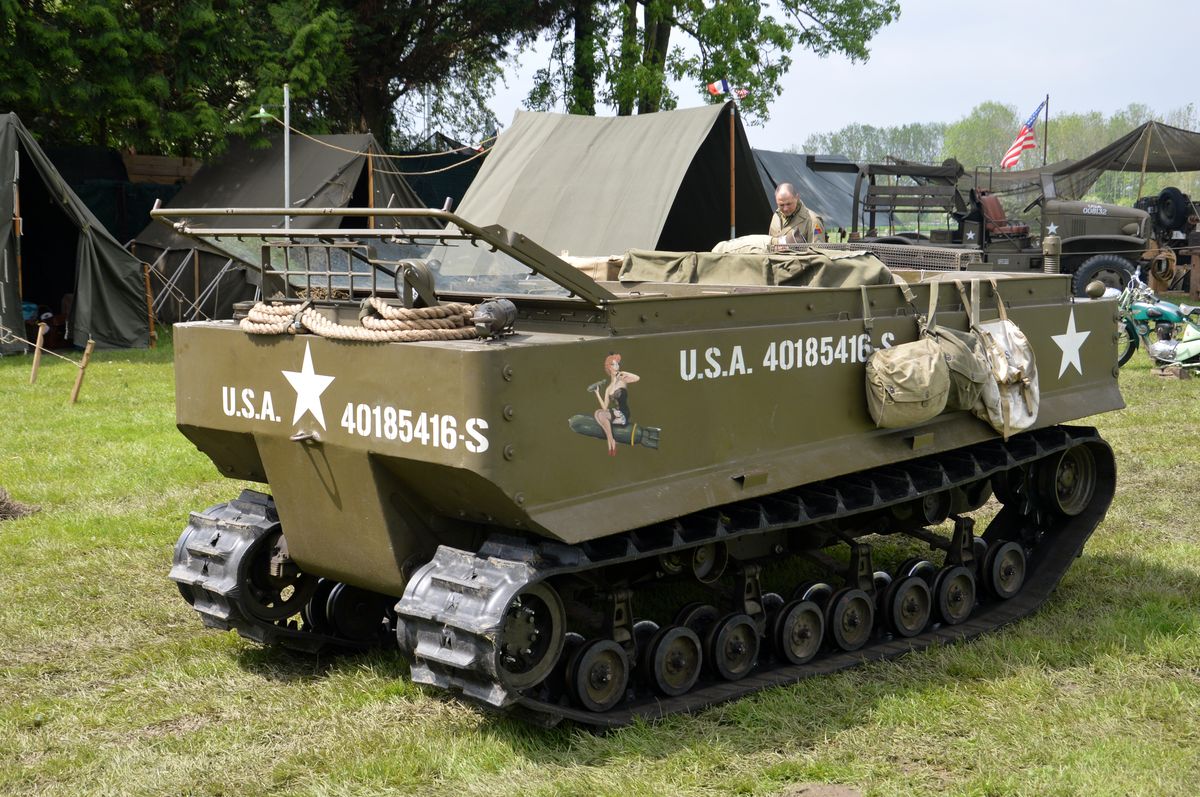 Quelques véhicules peu courants : Chevrolet M6 porte-bombes, Dodge WC 1/2 ton, Ford M8 ou M29 Weasel.