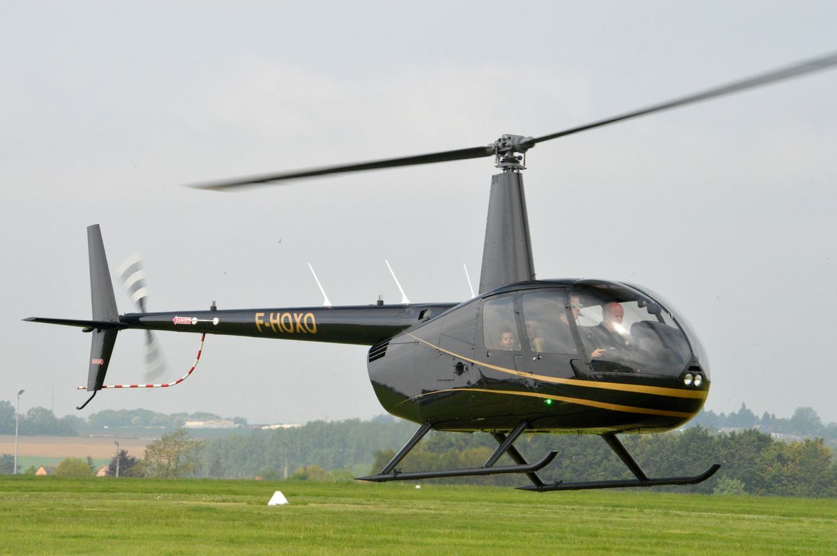 Un aperçu des nombreux avions participant aux baptêmes. Visiblement, le succès a été au rendez-vous, les décollages s'enchaineront toute la journée. Des baptêmes en hélicoptère étaient également possibles dans ce Robinson.