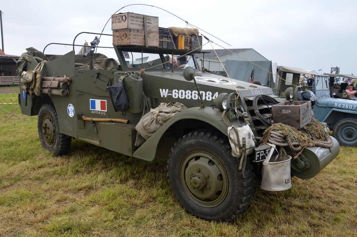 En avançant un peu plus loin, on tombait sur ce campement de la Seconde guerre mondiale, avec une douzaine de véhicules, Jeep, Dodge et GMC mais également un Scout Car.