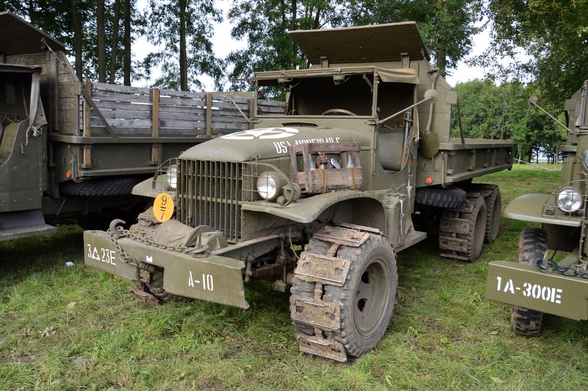 En passant par le GMC CCKW-353 dont de nombreux exemplaires étaient alignés. Un portait même les rarissimes chenilles pour améliorer la traction en tout-terrain.