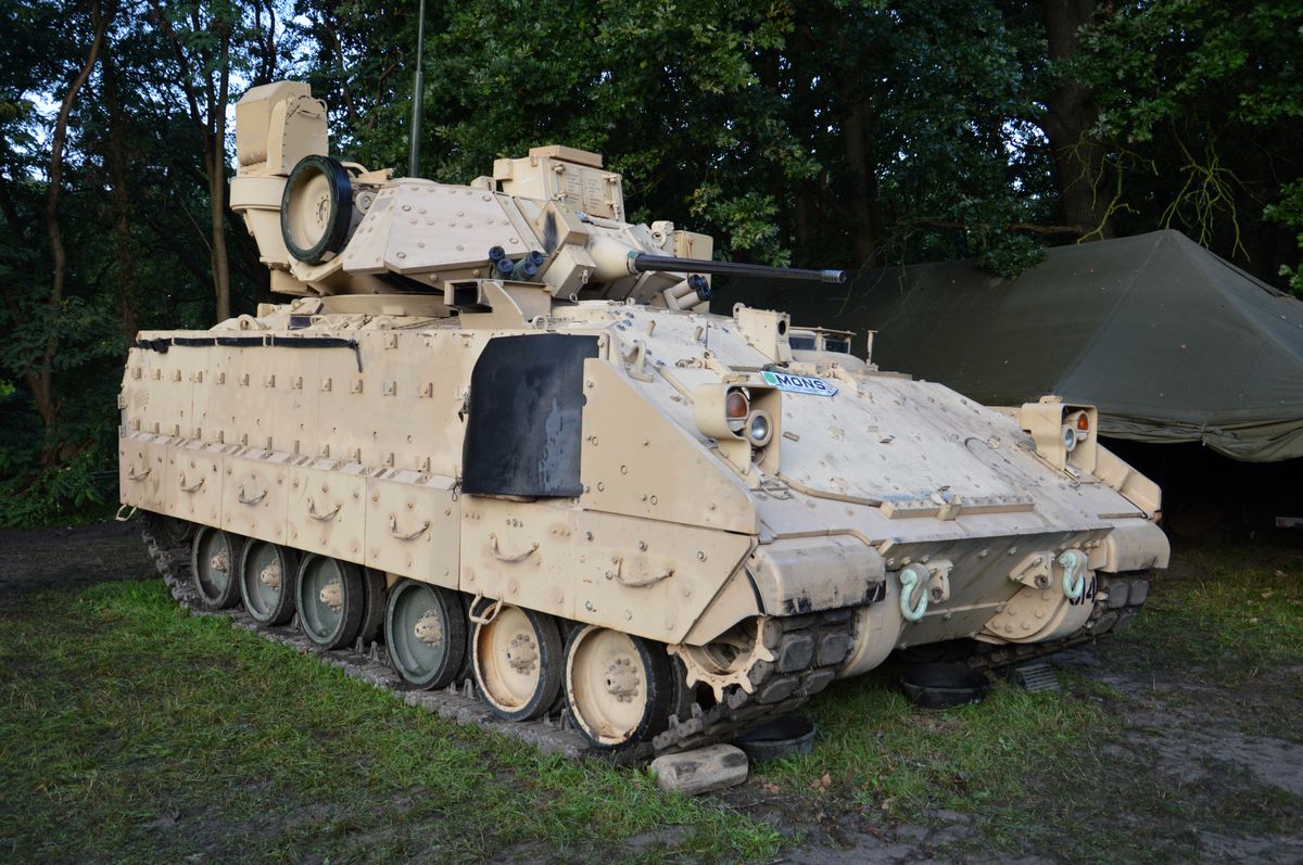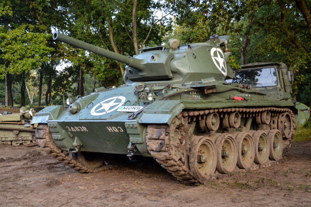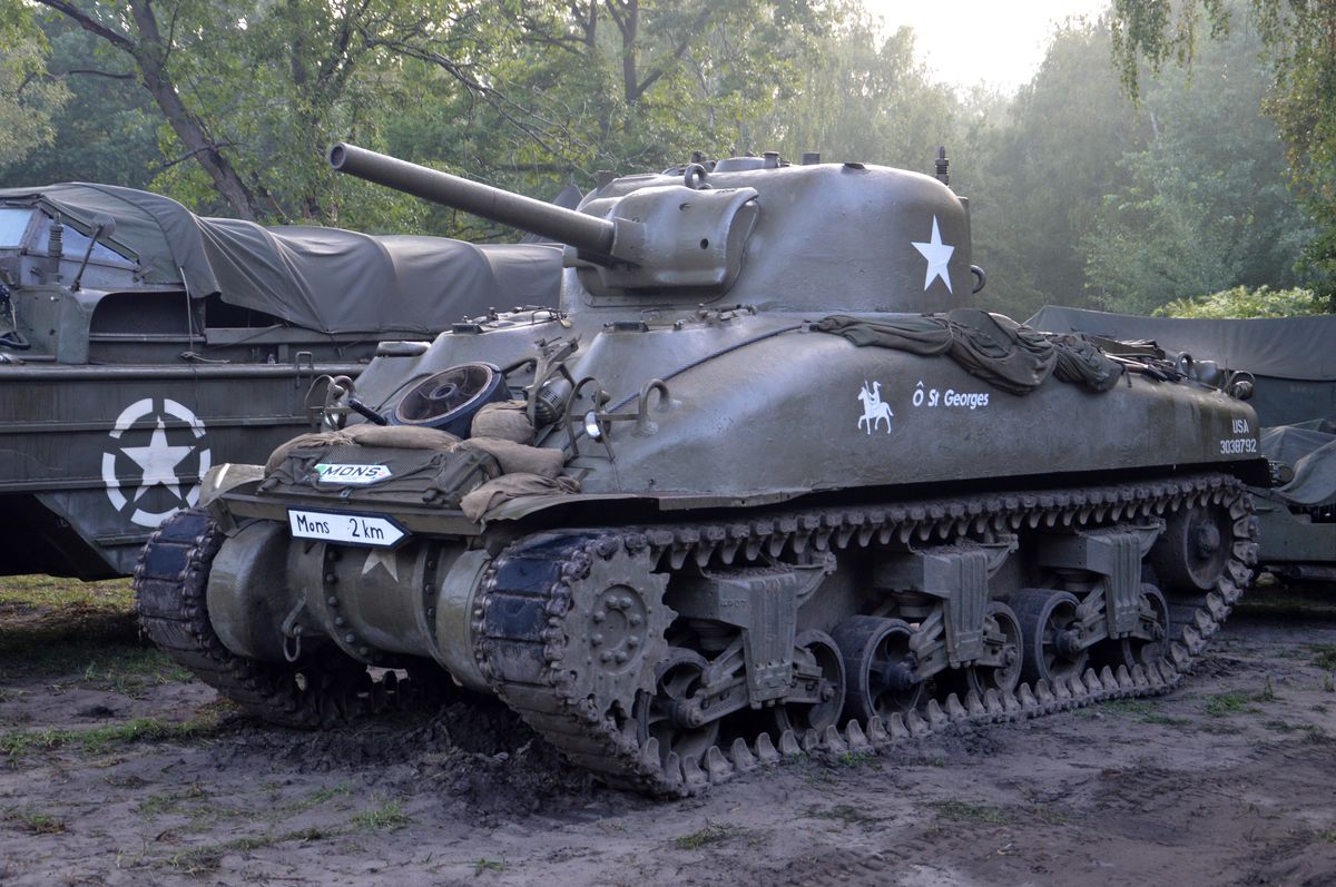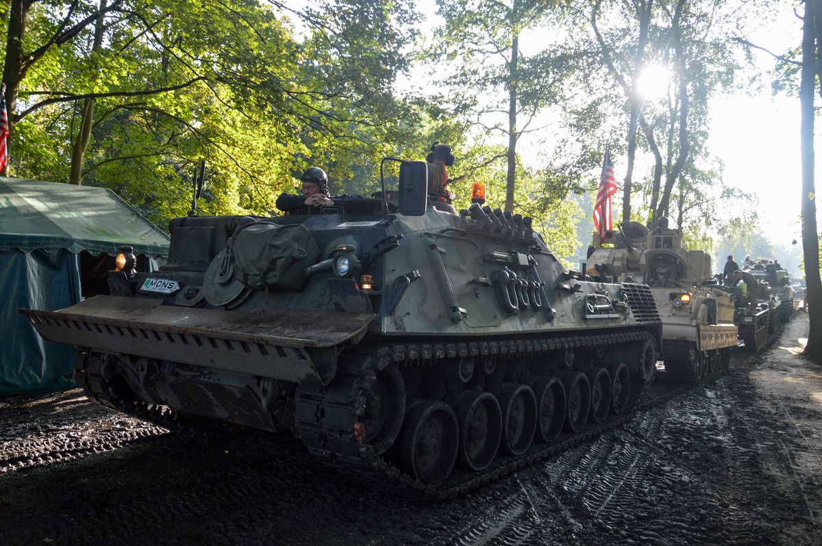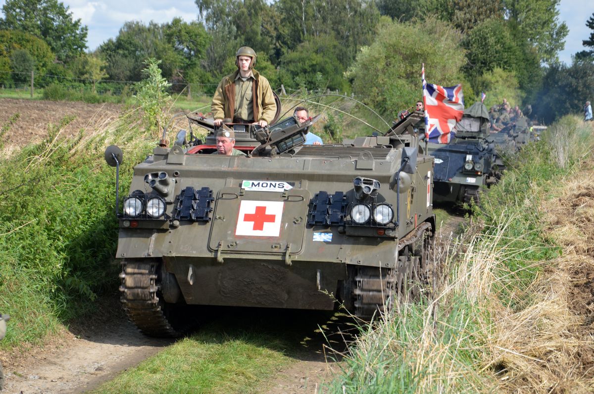 Nous arrivons tôt le matin au site du Bois-Brûlé, où le camp de base est établi, avant que le convoi ne parte pour la journée. A l'entrée, un Bradley de l'Armée Américaine accueille les visiteurs. En poursuivant dans le camp, on tombe sur les autres chars : Sherman M4A1/Grizzly "Ô Saint-Georges" et Stuart M5A1 "Fish'n'Chips" de la ville de Mons ou encore ces M24 Chaffee et M18 Hellcat de collectionneurs privés. Un M10 Achilles était également à voir, mais resté bâché, il ne sortira pas de la journée.