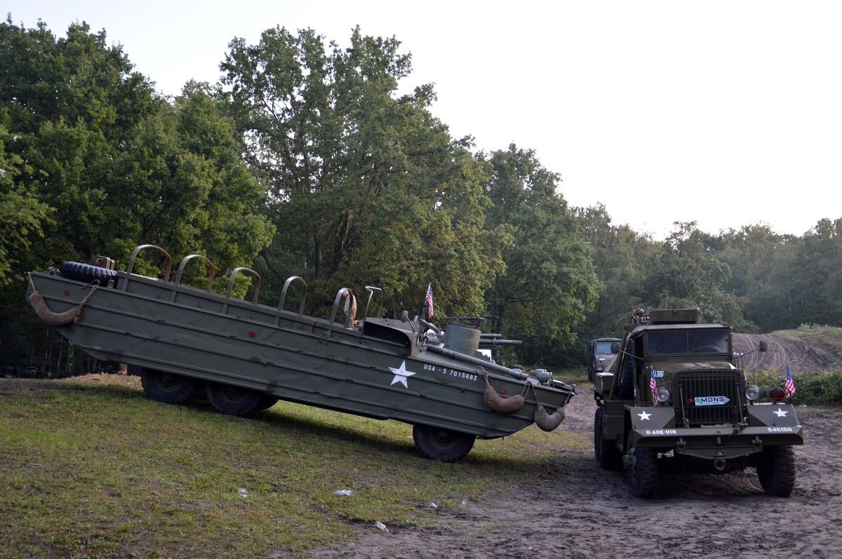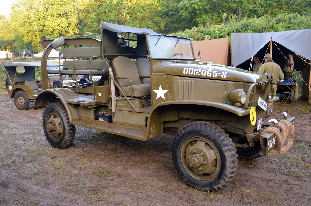 Même du côté des véhicules légers, c'est moins chargé que dans les grandes années. Néanmoins, du beau matériel tout de même : DUKW, Ward-La-France, Chevrolet M6, ou un Chevrolet Canada C60 tractant une rare remorque.