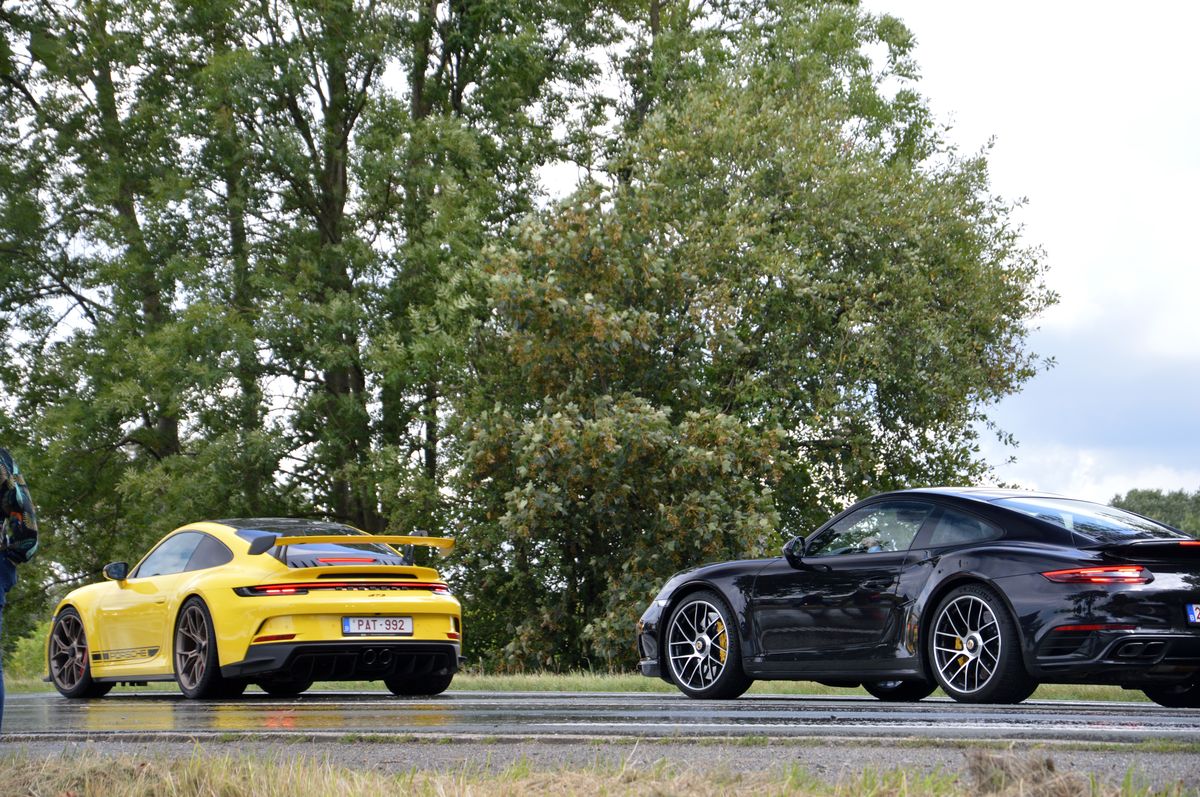 Au moment du départ, un groupe de supercars passait par là : Porsche 911 GT3 et Turbo, Ferrari 360 Spider et 488 ou Jaguar F-Type.