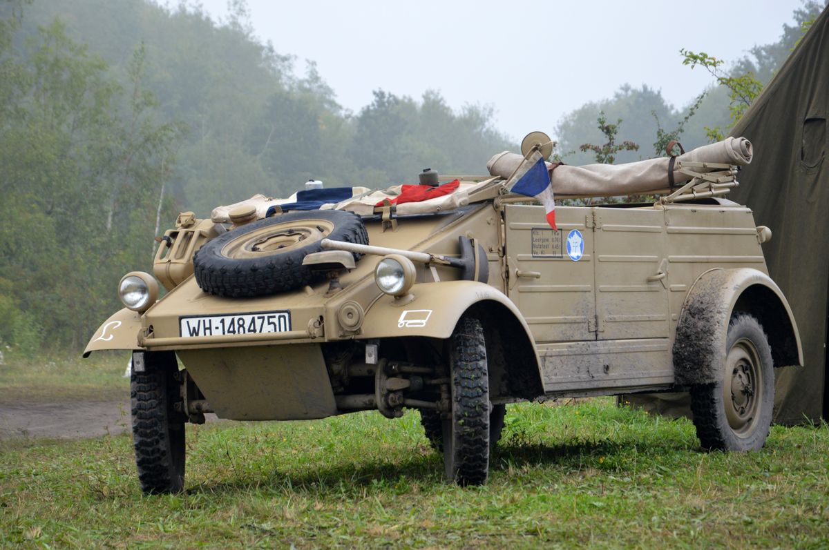 Nous repassons rapidement sur le camp le dimanche matin avant le grand défilé dans la ville. L'occasion de voir le Priest débarrassé de son camouflage, une Ford GPA et un autre DUKW nouvellement arrivés, ainsi que cette Kübelwagen.