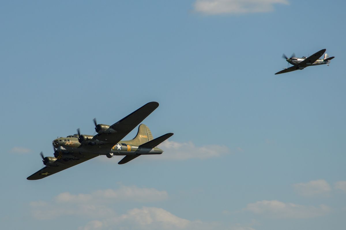 Puis entre en scène la forteresse volante, accompagnée d'un Spitfire. Je suis toujours surpris de l'agilité d'un si gros avion.