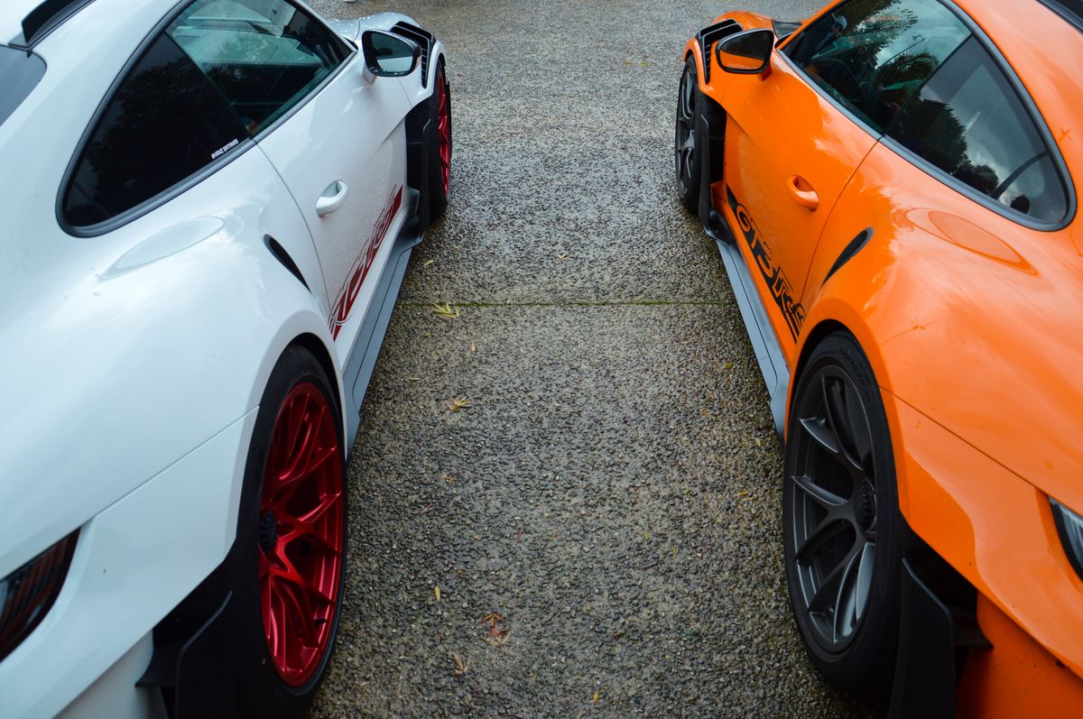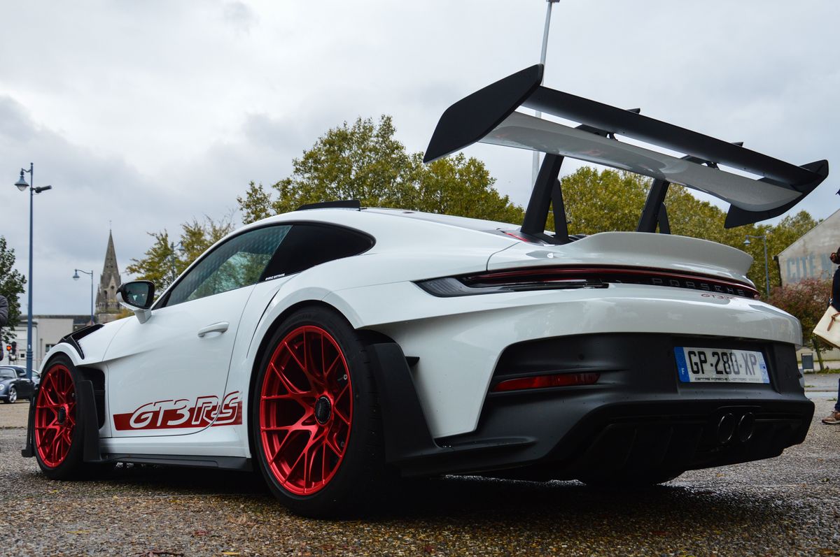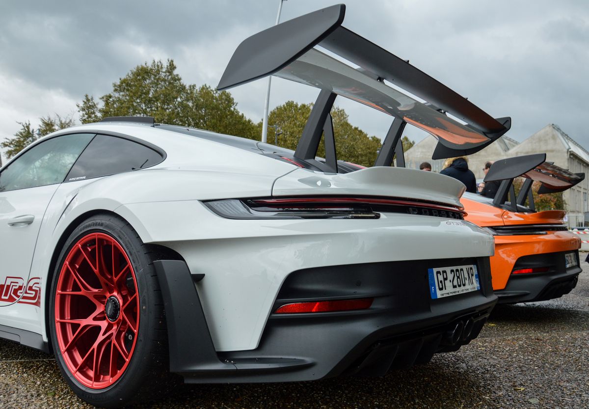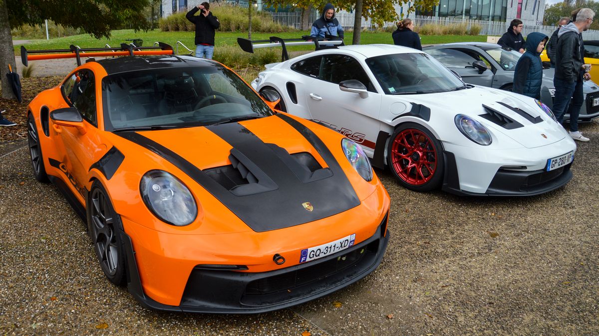 Ca commence fort avec la présente de deux exemplaires de la toute dernière 911 GT3 RS (992), dans des livrées rappelant la première (996) GT3 RS pour la blanche, et la 997 pour l'orange. Elles ont perdu en finesse, mais il faut reconnaître que c'est impressionant.