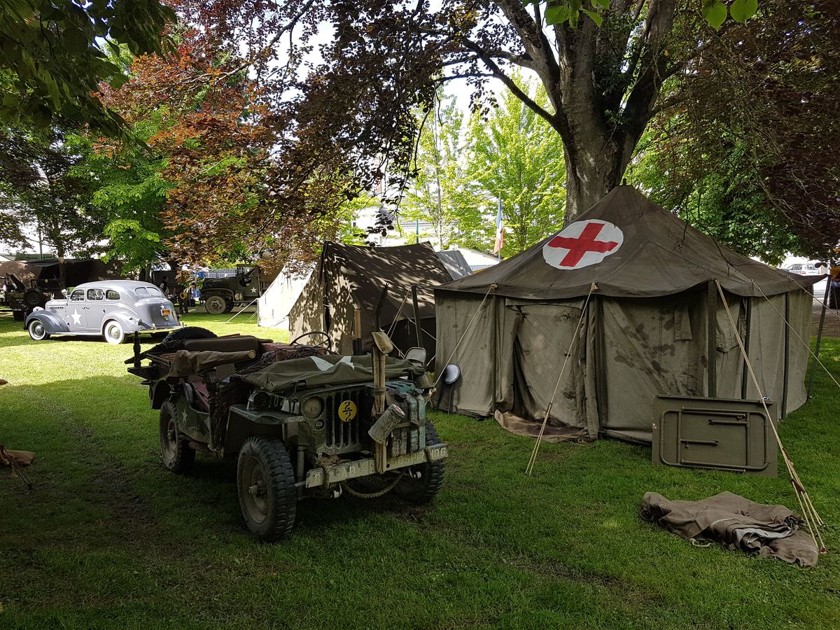 En ce dernier weekend de mai, direction la Bretagne pour accompagner l'association Univem à participer à la Libération de Pontivy, organisée par une association locale, le SMCM, Souvenir Militaire Centre Morbihan. La ville a été libéré en août 1944 par les troupes américaines, mais il a été décidé de déplacer les commémorations au mois de mai pour que tous le monde soit disponibles : le public,les collectionneurs, ou encore les scolaires. Au programme de la sortie : reconstitution d'un campement US ouvert au public, cérémonies commémoratives et défilé en ville le samedi ou encore convoi dans la campagne environnante le dimanche.