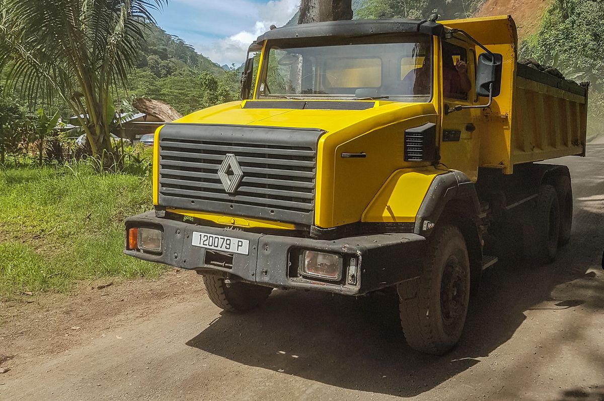 Pas grand chose à voir du côté des camions et autres véhicules industriels, si ce n'est la curiosité locale que sont les "Trucks" polynésiens : des carrosseries bricolés de bus montées sur des châssis de camions pour servir de transport scolaire sur toutes les îles. J'ai été également surpris de voir encore en activité ce vieux Renault CBH, ou de voir sur Bora-Bora des school bus américains Bluebird.