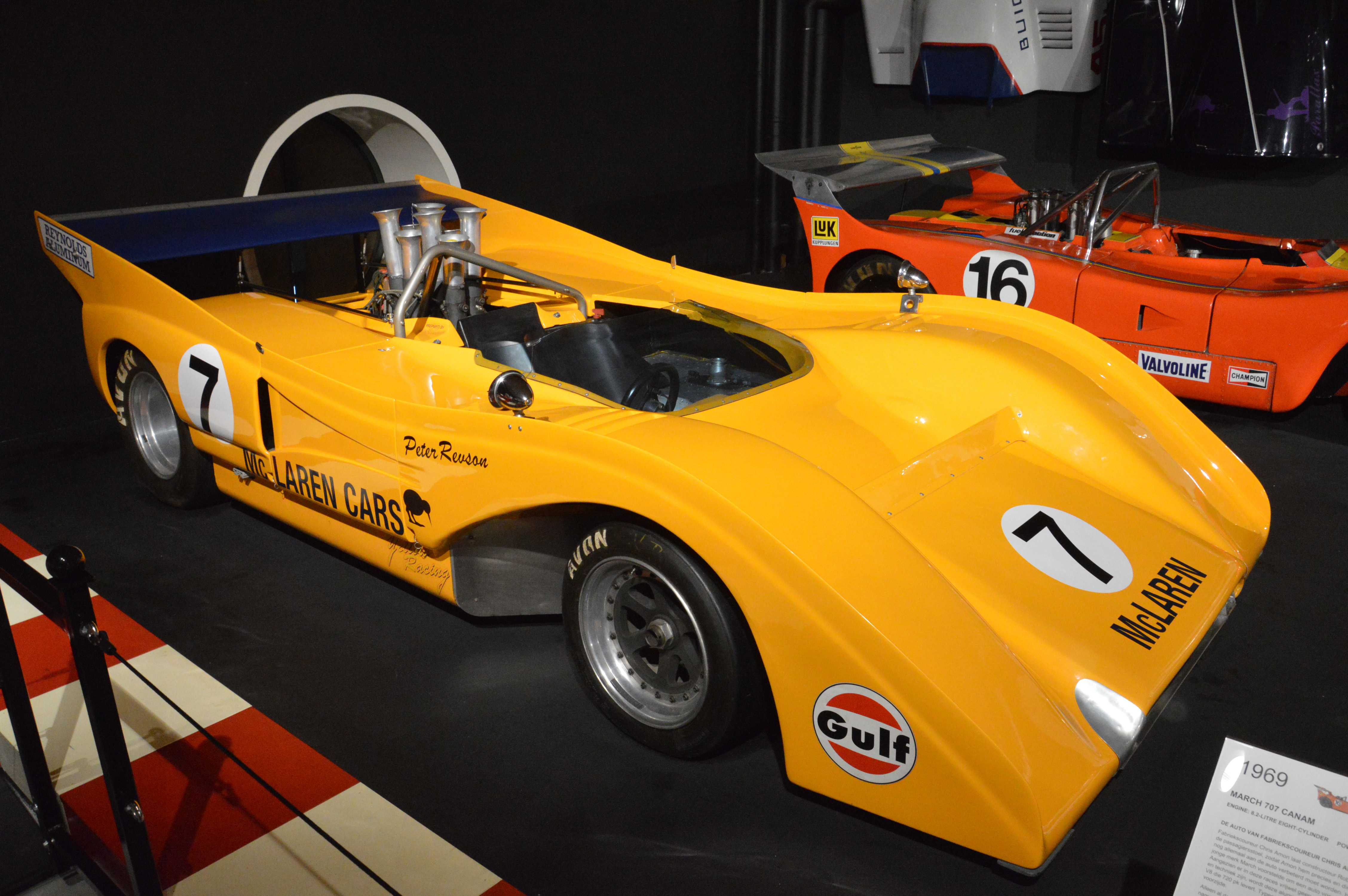 On trouve vraiment de tout : March 2-4-0/771 à 6 roues, Plymouth Superbird, McLaren M8F,...