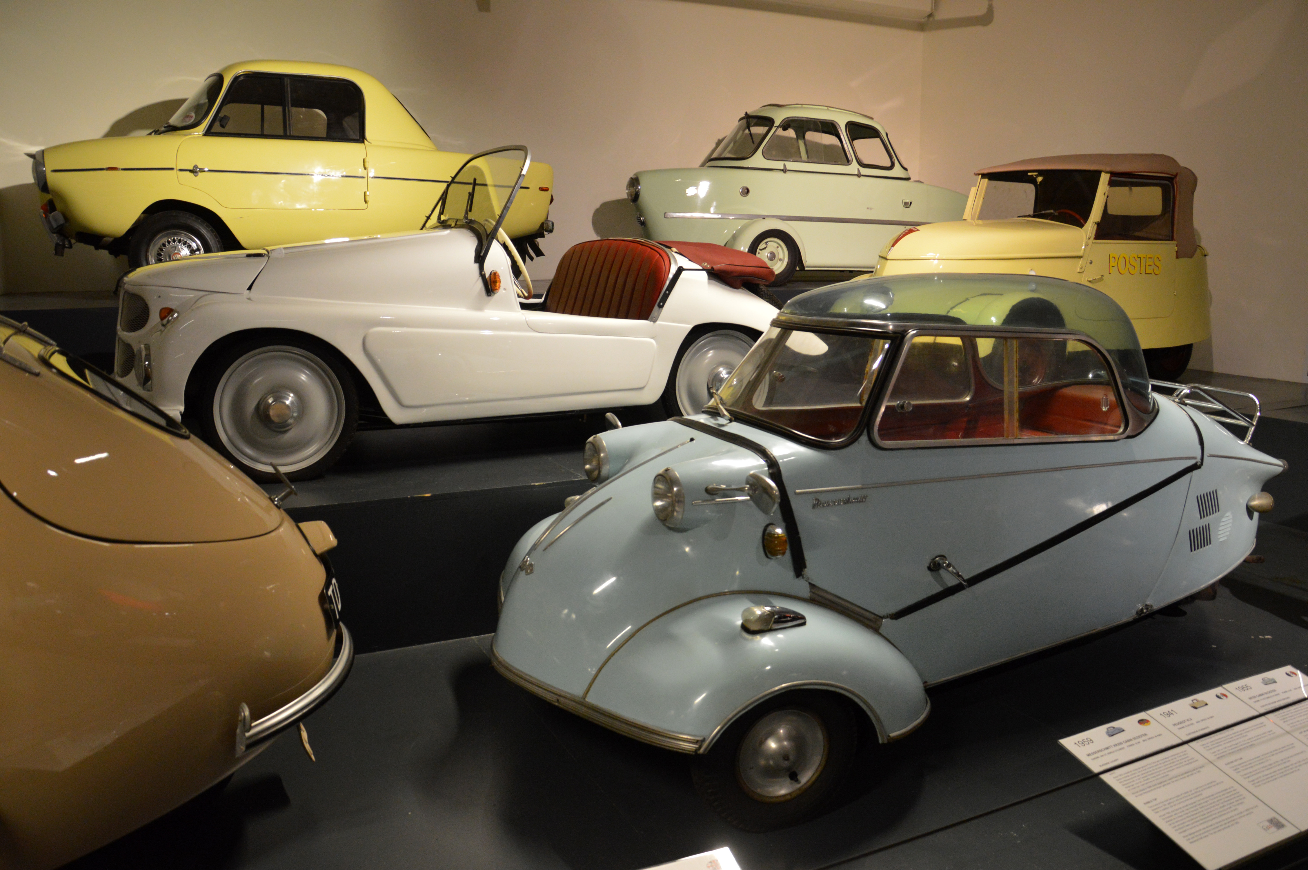 On trouve ensuite des micro-cars, des moteurs et des voitures populaires, entre lesquelles se sont intercalés quelques voitures militaires.