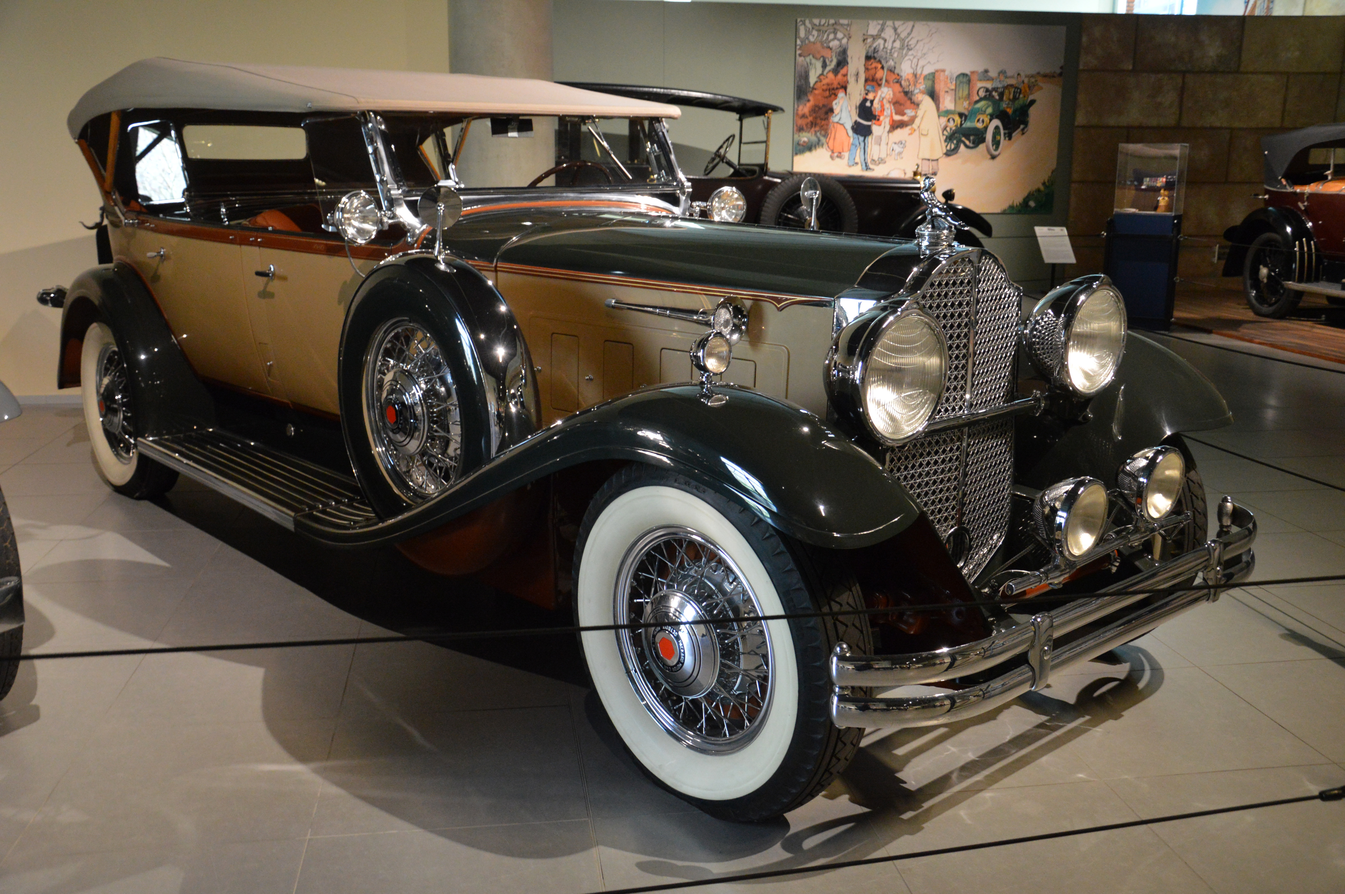 On y trouve différentes voitures de luxe des années 20 et 30, comme cette Joswin, cette American Underslung, cette Packard ou cette Isotta-Fraschini.