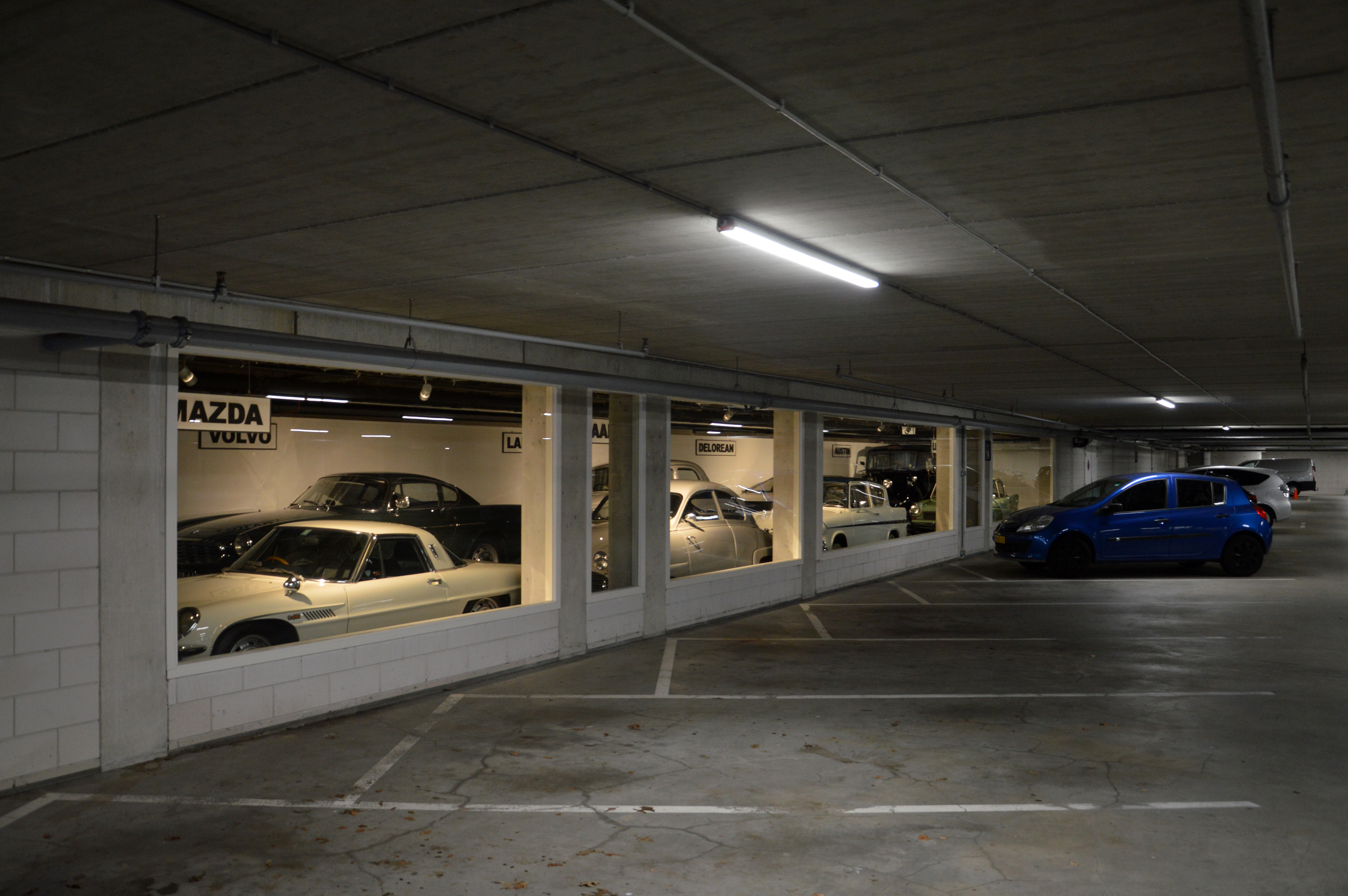 La visite commence dès le parking du musée, situé en souterrain, avec plusieurs voitures exposées en vitrine. On y trouve notamment une Mazda Cosmo ou une Delorean DMC 12. Ensuite, le bâtiment est très joli, aussi bien en extérieur qu'à l'intérieur.