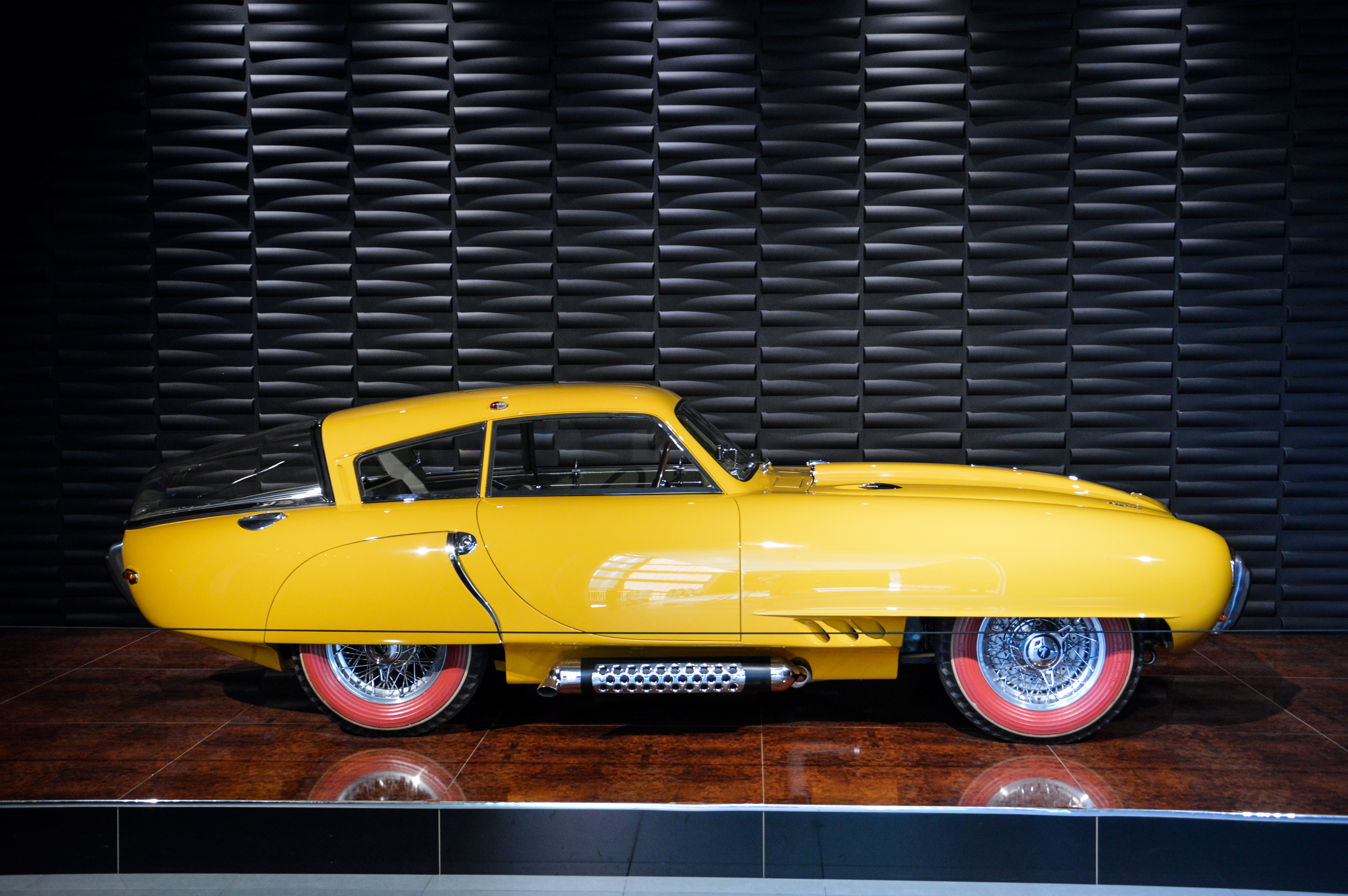 D'autres voitures sont exposées comme cette Maserati MC12 Corsa, cette Toyota Sports 800, cette évocation de Lincoln des années 40 construite sur un châssis de SUV ou encore cette autobus Milnes Daimler.