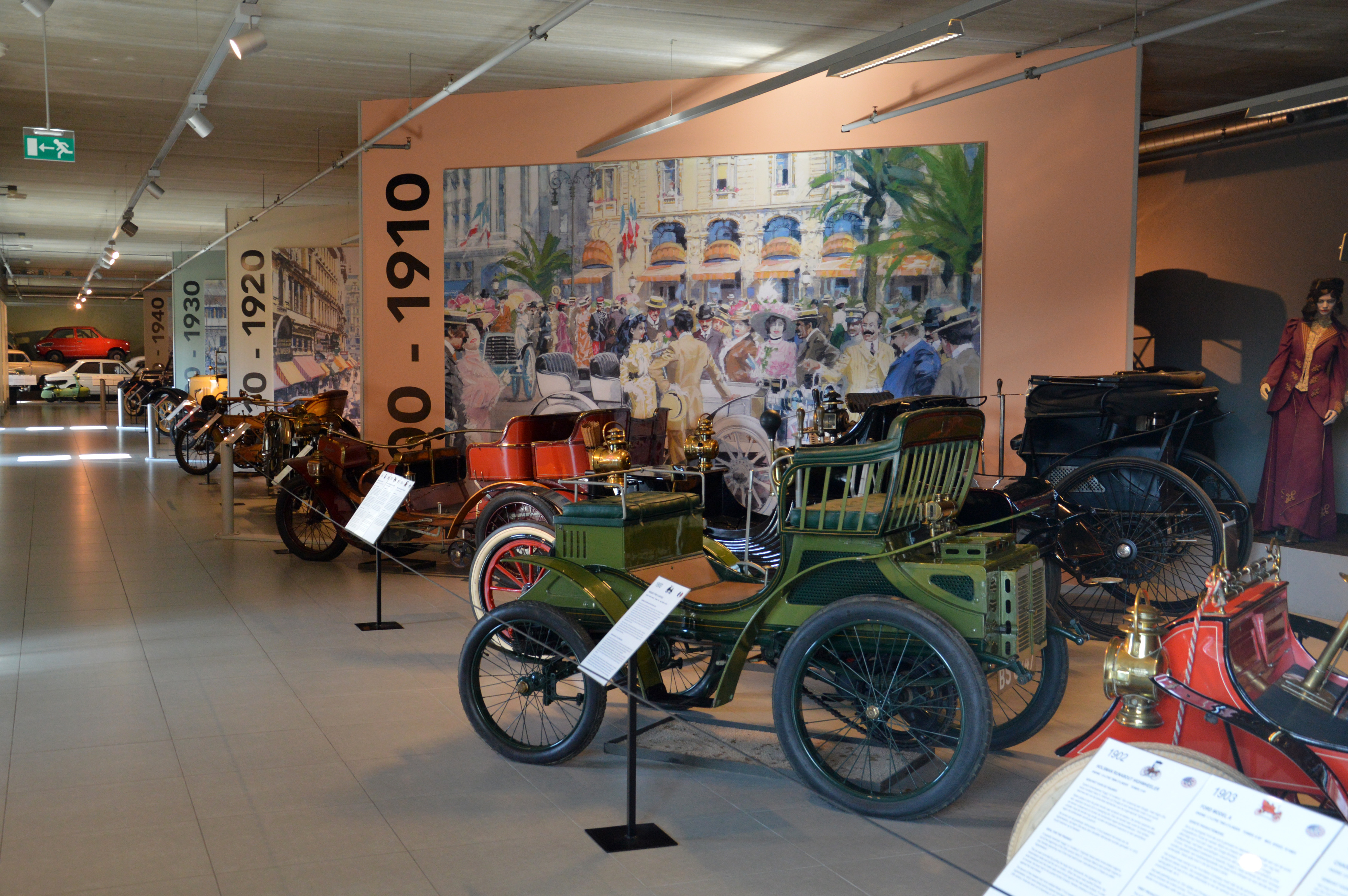 On prend ensuite un ascenseur pour monter au dernier étage. S'ensuit un avancement dans le temps avec différentes automobiles joliment mises en scène. Cela commence par une calèche, suivie des premières voitures à moteur. Quelques exemples : quadricycle De Dion Bouton, Daimler 6HP ou Regal Model N.
