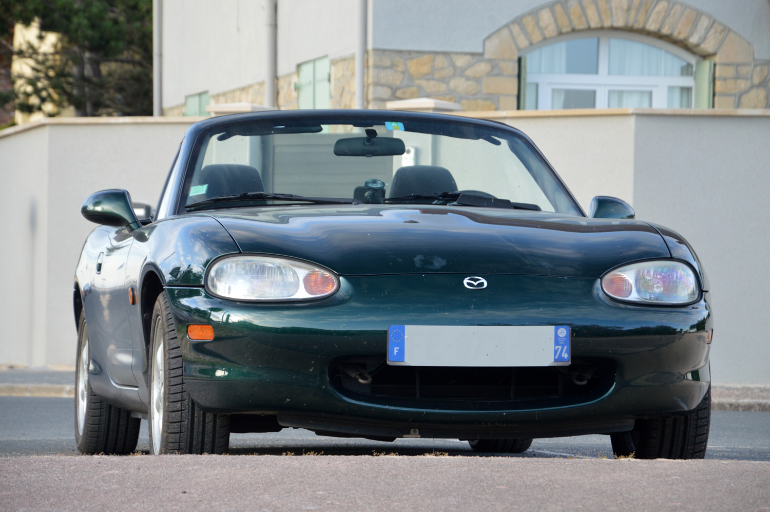 Dans le temps, je n’avais jamais daigné jeter un regard sur ces petites voitures, mais à force d’en lire les louanges, de rencontrer quelques propriétaires, j’ai commencé à regarder les annonces au moment de chercher une deuxième voiture alors que je souhaitais une propulsion. Je tombe sur un vendeur qui semble spécialisé dans l’import, la réfection et la vente de NA et NB (les deux premières générations). Après un premier contact téléphonique, je me rends sur place. Une vingtaine de modèles y sont présents. Mes premières impressions se confirment, à voir en vrai, je préfère vraiment la NB. J’ai l’occasion d’en essayer une, et là c’est la révélation : Il y a un quelque chose d’indescriptible, ça a déjà été dit, mais en effet, on a immédiatement un sentiment de faire corps avec la machine. C’est tellement vif (la pédale d’accélérateur réagit au moindre mouvement) et la tenue de route est plus que correcte (je sors pourtant d’une Clio RS, une référence sur ce terrain), et les cheveux aux vents en cette belle journées d’août me font rapidement arriver à la conclusion : il m’en faut une !